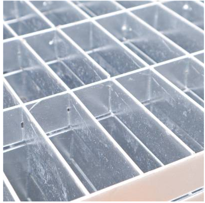 承載扁鋼開30°或45°斜槽,橫桿扁鋼開槽,壓鎖成型。根據不同需要,可加工其它間距,規格的格柵板,可使用普碳鋼,不銹鋼等材料。