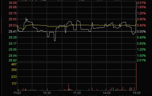 2011年11月23日臨近收盤期間(14:56:24至14:59:28),任某某為了在短期內拉升股價,大量申報買入“X”4筆共計63,000股,占尾市階段市場申買量的比例高達75.54%;委托價格由29.60元升至32.00元,每筆均高于當時市場上的買1檔價格,三分鐘內將股價由29.35元拉升至30元收盤,拉升幅度達2.21%。(見下圖)