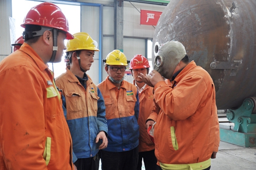 五是開展受限空間作業現場模擬演練,由企業領導對受限空間作業特點、危害、安全措施、防護器材等進行了詳細講解。