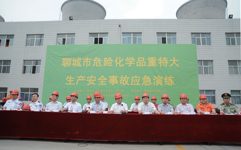 為進(jìn)一步提高《聊城市重特大安全生產(chǎn)事故應(yīng)急救援預(yù)案》的科學(xué)性、實(shí)用性和可操作性,提高應(yīng)急救援人員在緊急情況下妥善處置事故的能力,完善應(yīng)急管理相關(guān)部門工作職責(zé),6月30日,由聊城市人民政府安全生產(chǎn)委員會(huì)和高新區(qū)管委會(huì)主辦,魯西集團(tuán)有限公司承辦的聊城市危險(xiǎn)化學(xué)品重特大生產(chǎn)安全事故應(yīng)急演練在魯西集團(tuán)舉行。