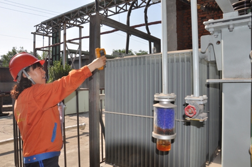 圖為:電氣人員對(duì)主變壓器的運(yùn)行溫度進(jìn)行測量