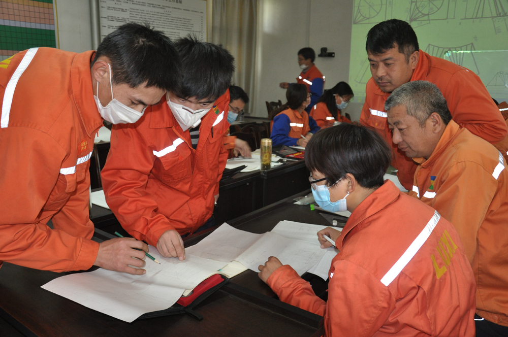 “天圓地方綻放放樣應該注意這幾點……”4月25日上午,魯西集團平陰魯西裝備公司培訓室內,集團技術創新部鉚工專業講師楊繼波正為職工傳授鉚工實訓及技能鑒定過程中的常見問題和操作標準要求。