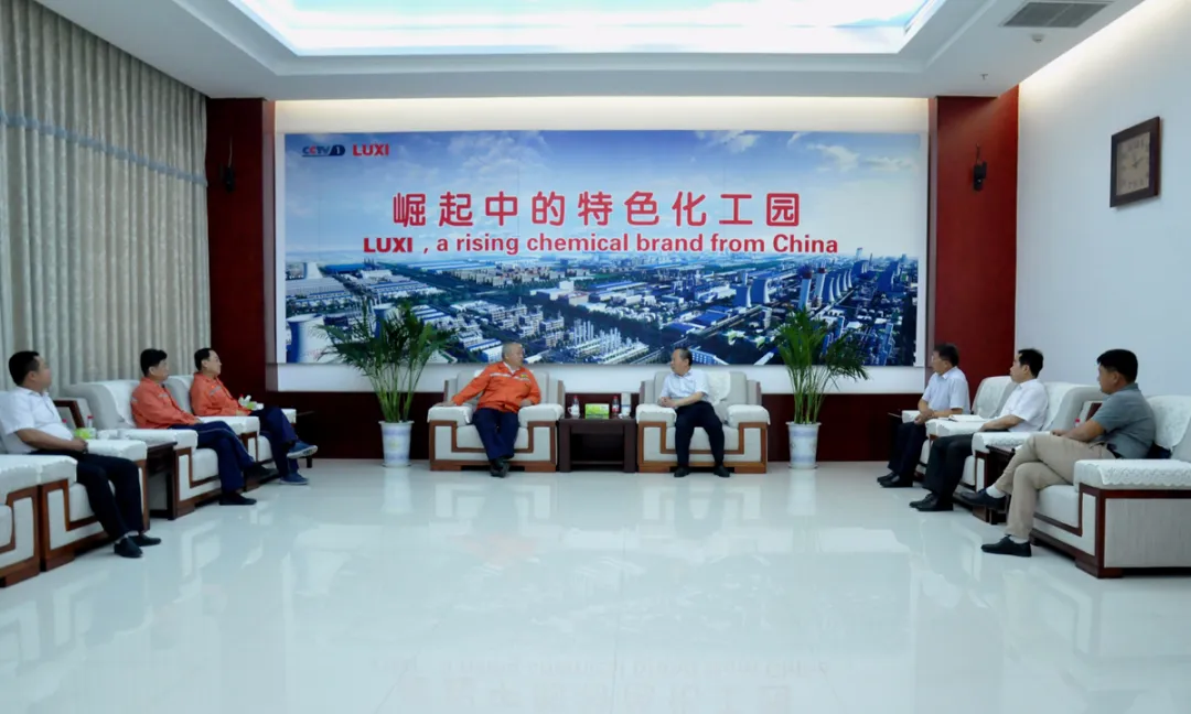 座談中,董事長詳細介紹了企業目前的主業構成、生產經營、化工園區的產業鏈結構以及與中化集團合作的進展等情況。
