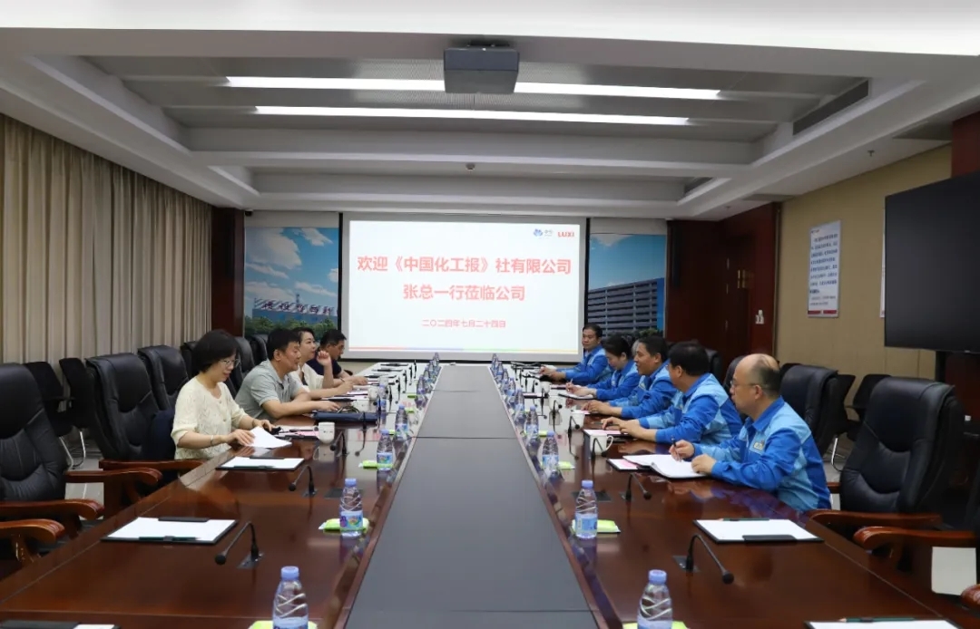 7月24日,《中國化工報》社有限公司總編輯、總經理張健秋一行來公司調研采訪,公司總經理、黨委副書記王延吉,副總經理姜吉濤等參加活動。