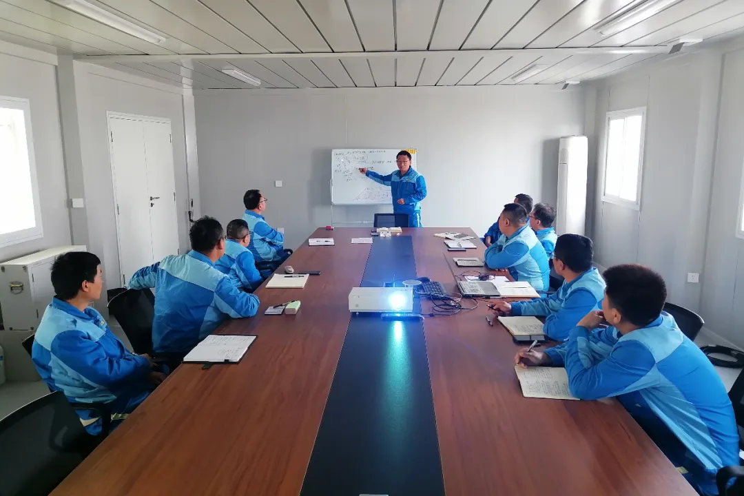 施工未展開(kāi),安全必先行。項(xiàng)目部建立常態(tài)化安全培訓(xùn)機(jī)制,在每天的安全課堂上,安全員帶領(lǐng)員工進(jìn)行“沉浸式”安全培訓(xùn),用真實(shí)事故案例制作VR模擬課件,讓施工人員在虛擬場(chǎng)景中感受違規(guī)操作的危害。培訓(xùn)后,施工人員需通過(guò)“理論+實(shí)操”的三方考核,才能上崗,確保“每個(gè)人過(guò)關(guān)才上崗”。每周結(jié)合現(xiàn)場(chǎng)工況開(kāi)展定制化安全規(guī)范培訓(xùn),同步融入國(guó)際安全管理理念及發(fā)包方核心要求,動(dòng)態(tài)更新安全知識(shí)庫(kù),確保團(tuán)隊(duì)實(shí)時(shí)掌握最新行業(yè)標(biāo)準(zhǔn)與技術(shù)規(guī)范。