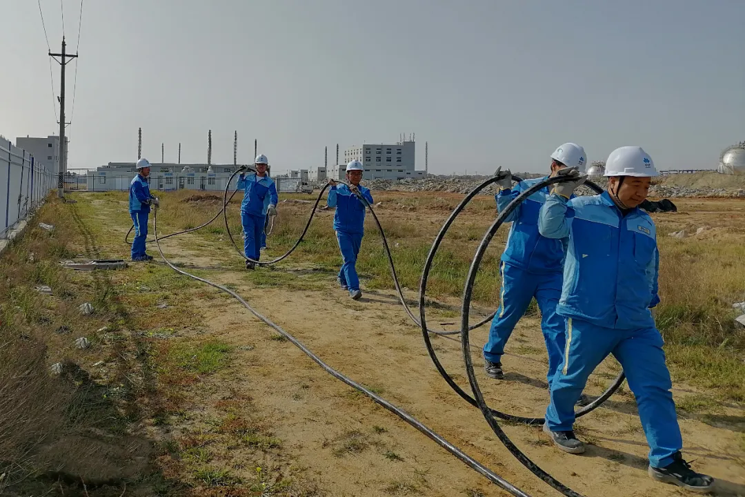 上下同欲者勝。項(xiàng)目部針對(duì)路途遠(yuǎn)、供貨慢的現(xiàn)狀,經(jīng)過(guò)價(jià)格對(duì)比協(xié)調(diào)泉州石化的電纜運(yùn)到現(xiàn)場(chǎng)。沒(méi)有施工人員,黨員干部率先垂范齊上陣,肩扛手拉起比胳膊還粗的電纜自行敷設(shè),他們?cè)陔y度最大的電纜拐彎處,一邊喊著口號(hào)一邊使勁往前拽,人人臉漲的通紅,脖子上暴起青筋,空氣中回蕩著號(hào)子聲,最終在汗水與吆喝聲中敷設(shè)好了一條保障供給的“動(dòng)力脈絡(luò)”。